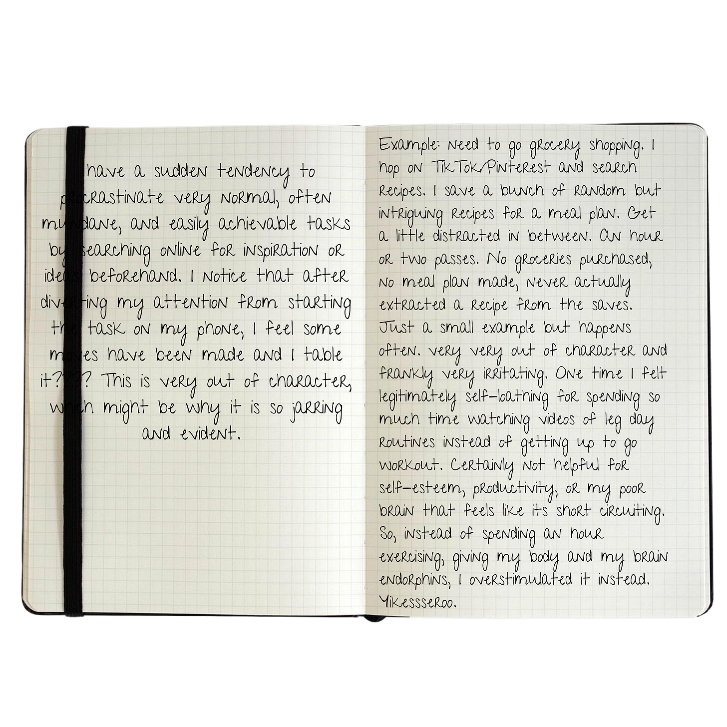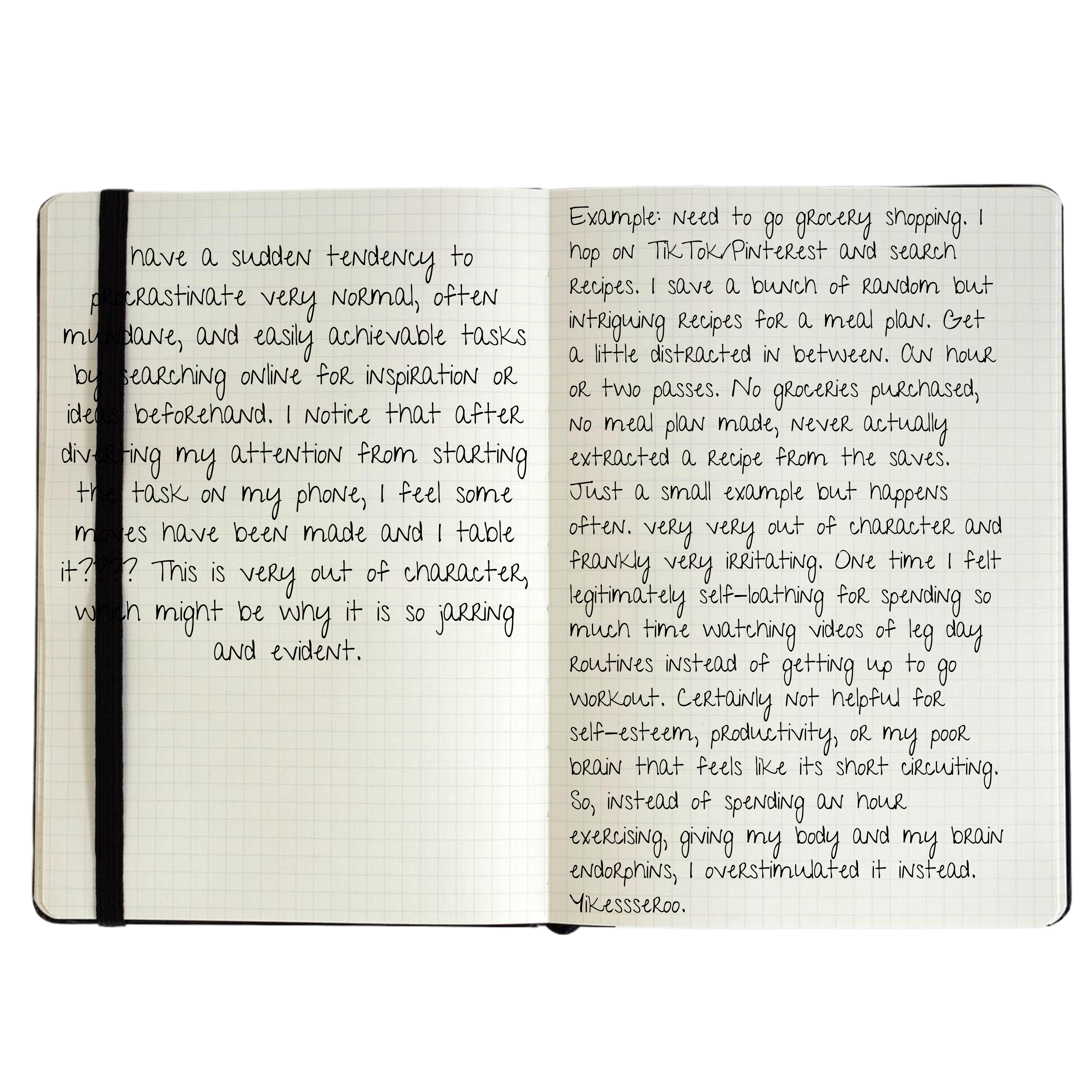 Example: need to go grocery shopping. I hop on TikTok/Pinterest and search recipes. I save a bunch of random but intriguing recipes for a meal plan. Get a little distracted in between. An hour or two passes. No groceries purchased, no meal plan made, never actually extracted a recipe from the saves. Just a small example but happens often. very very out of character and frankly very irritating. One time I felt legitimately self-loathing for spending so much time watching videos of leg day routines instead of getting up to go workout. Certainly not helpful for self-esteem, productivity, or my poor brain that feels like its short circuiting. So, instead of spending an hour exercising, giving my body and my brain endorphins, I overstimulated it instead. Yikessseroo.