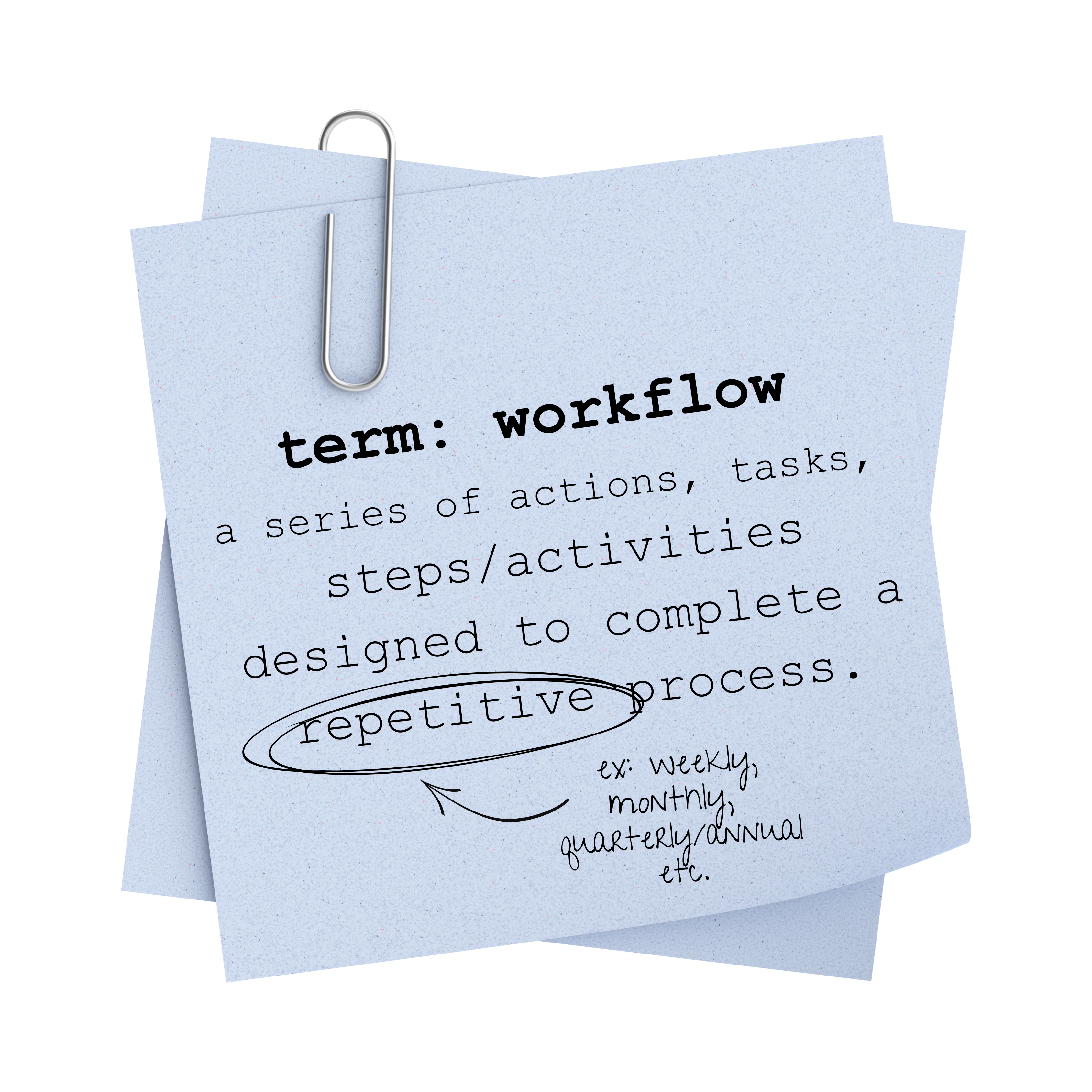 By definition: a workflow is a series of actions, tasks, steps, or activities designed to achieve a specific goal or complete a repetitive process.